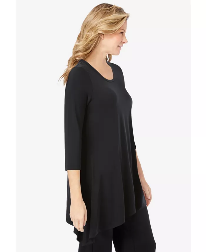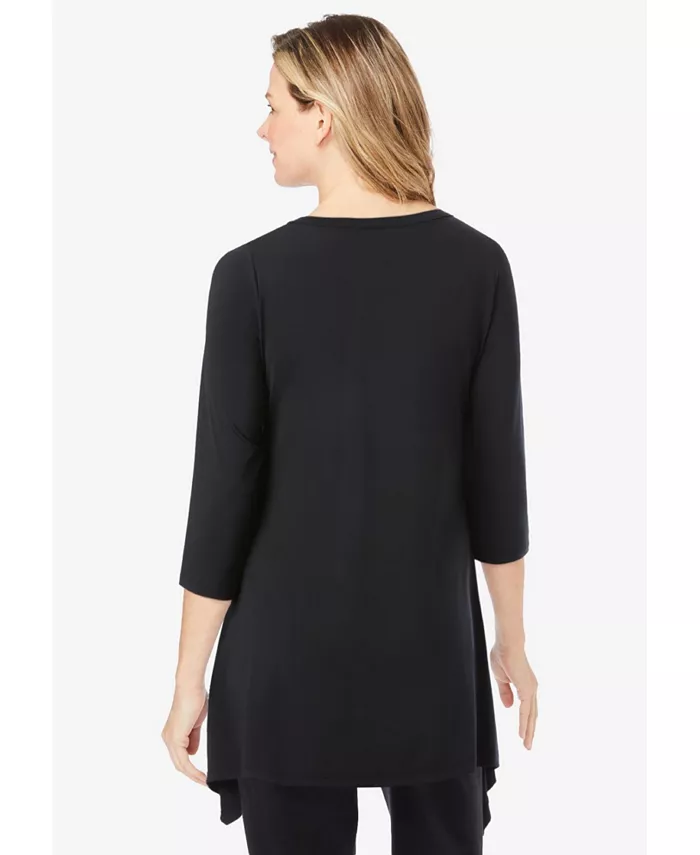 Вырез-лодочка и удлиненные боковые части создают красивую, женственную драпировку. Мягкий и гладкий эластичный трикотаж обеспечивает комфорт в течение всего дня. Свободный крой идеально подходит для многослойного ношения и создания разнообразных образов. Рукава три четверти обеспечивают идеальную посадку, не стесняя движений. Удлиненная туника обеспечивает достаточное прикрытие и идеально сочетается с джинсами, леггинсами и юбками. Длина туники 75 см обеспечивает комфортную и сдержанную посадку. Легкая в уходе смесь полиэстера и спандекса - можно стирать в стиральной машине. Импортное производство.