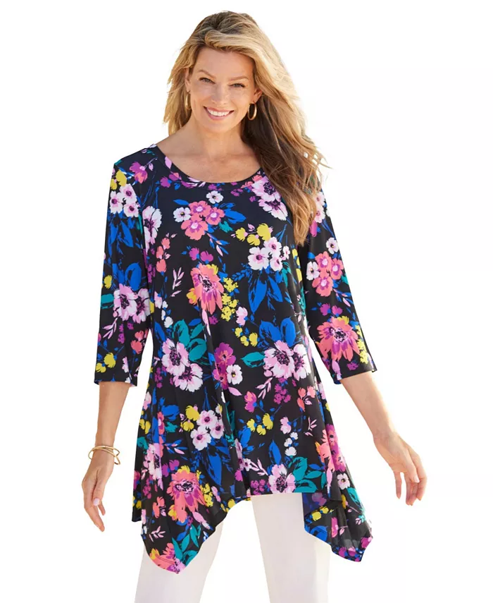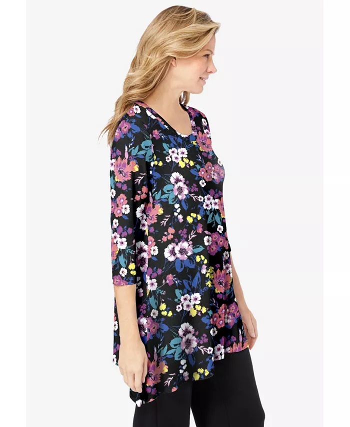 Вырез-лодочка и удлиненные боковые части создают красивую, женственную драпировку. Мягкий и гладкий эластичный трикотаж обеспечивает комфорт в течение всего дня. Свободный крой идеально подходит для многослойного ношения и создания разнообразных образов. Рукава три четверти обеспечивают идеальную посадку, не стесняя движений. Удлиненная туника обеспечивает достаточное прикрытие и идеально сочетается с джинсами, леггинсами и юбками. Длина туники 75 см обеспечивает комфортную и сдержанную посадку. Легкая в уходе смесь полиэстера и спандекса - можно стирать в стиральной машине. Импортное производство.