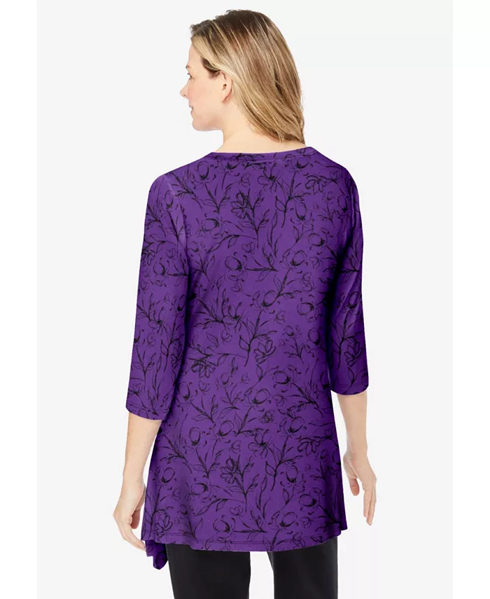 Вырез-лодочка и удлиненные боковые части создают красивую, женственную драпировку. Мягкий и гладкий эластичный трикотаж обеспечивает комфорт в течение всего дня. Свободный крой идеально подходит для многослойного ношения и создания разнообразных образов. Рукава три четверти обеспечивают идеальную посадку, не стесняя движений. Удлиненная туника обеспечивает достаточное прикрытие и идеально сочетается с джинсами, леггинсами и юбками. Длина туники 75 см обеспечивает комфортную и сдержанную посадку. Легкая в уходе смесь полиэстера и спандекса - можно стирать в стиральной машине. Импортное производство.