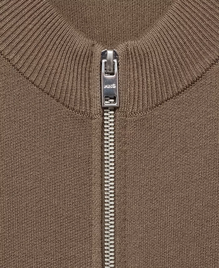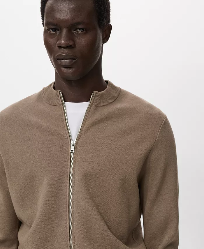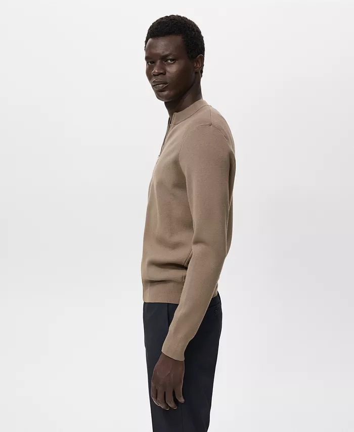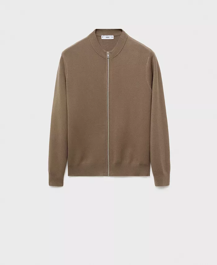 Вязаный кардиган на молнии от Mango с текстурированной поверхностью обеспечит тепло. Изготовлен из ткани средней вязки.