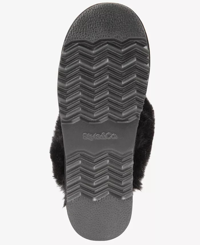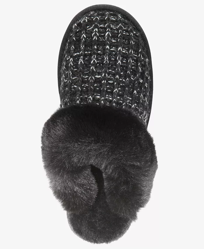 Вязаный свитер с вафельной текстурой в сочетании с плюшевым искусственным мехом делает тапочки Rayaa от Style & Co удобными для ношения и уютными.