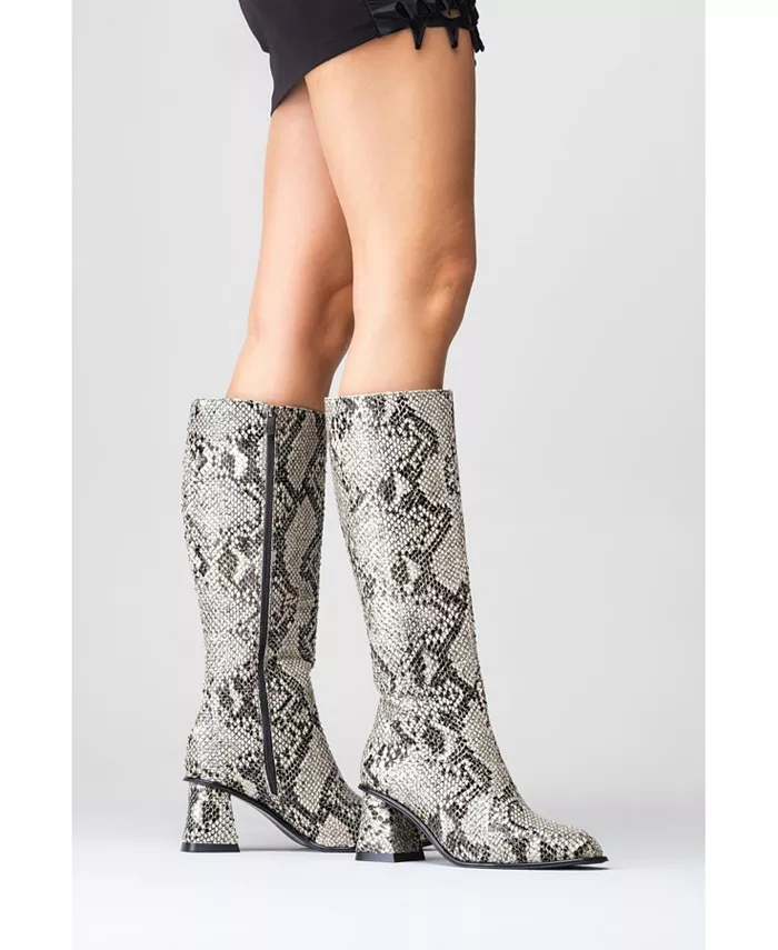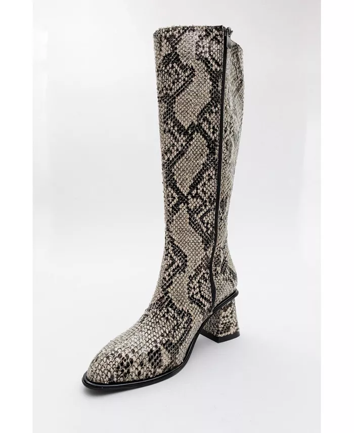 Гламурные фактурные сапоги для верховой езды с массивным каблуком и отделкой из гладкой искусственной кожи - идеальный вариант для смелого модного образа.