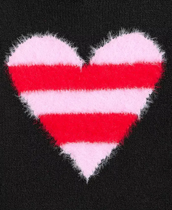 Деталь в виде пушистого полосатого сердца оживляет уютный классический стиль для повседневных дней в этом очаровательном вязаном свитере с круглым вырезом от Epic Threads.