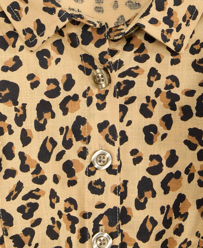 Добавьте в свой гардероб гармоничное сочетание причудливости и безудержного веселья с этим платьем-рубашкой с леопардовым принтом от Epic Threads. Застежка на пуговицы спереди обеспечивает легкость надевания. Лиф с оборками добавляет образу еще больше очарования.
