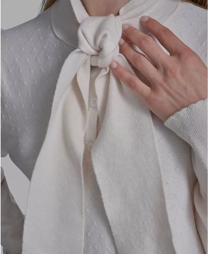 Добавьте изысканности в свой гардероб с этим свитером BCBG, который сочетает в себе классический стиль и непринужденный шик и женственность. Воротник-стойка, застежка на пуговицы спереди и завязка на шее придают модели элегантный шарм, а длинные рукава и универсальный крой идеально сочетаются с юбками, брюками и джинсами.