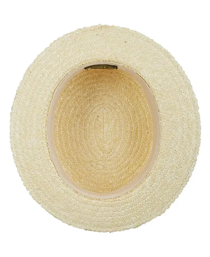 Добавьте нотку изысканности с этой шляпой-канотье от Scala, украшенной плетеным лайчоу и изящной лентой из репсовой ленты. Легкая и структурированная, она обеспечивает комфорт и тень, украсив любой повседневный или нарядный образ.
