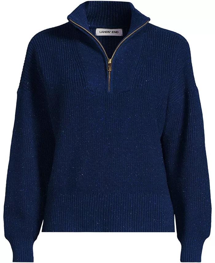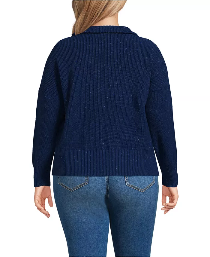 Плюс сайз свитер Drifter Shaker Wedge с четвертью молнией Lands' End, синий