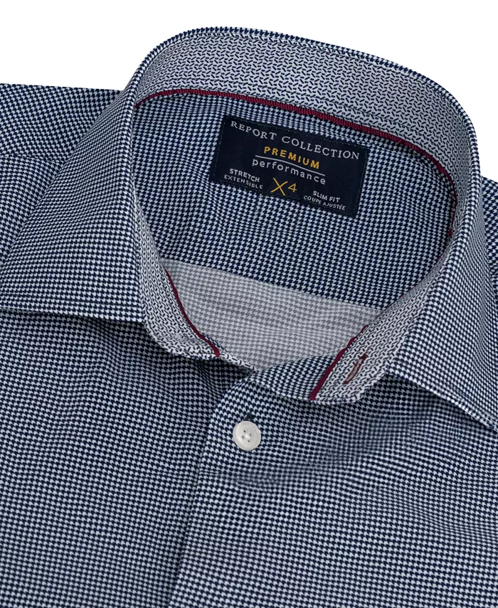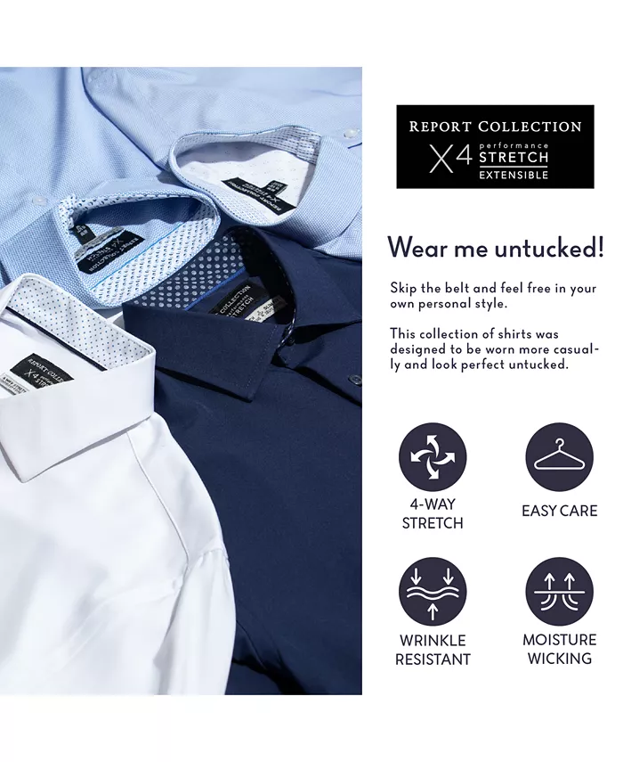 Дополните свою коллекцию универсальных повседневных образов с помощью этой облегающей эластичной рубашки на пуговицах из Report Collection, изготовленной из немнущейся ткани, которая поможет вам оставаться бодрыми и собранными в течение всего дня.
