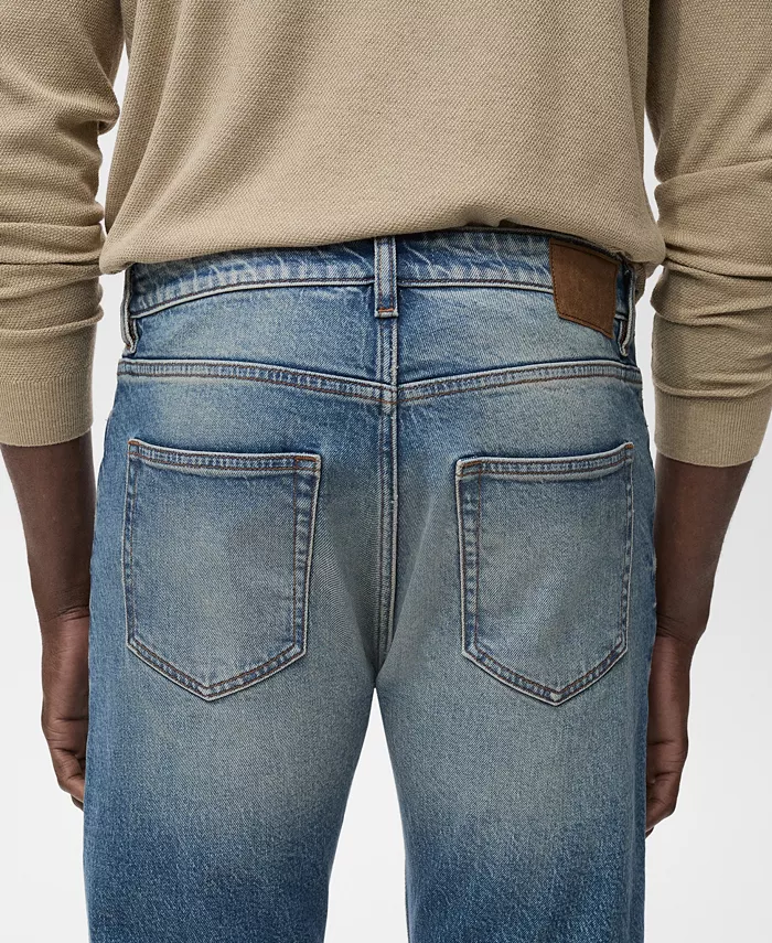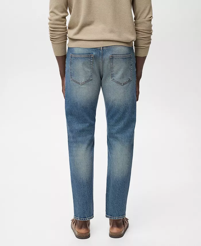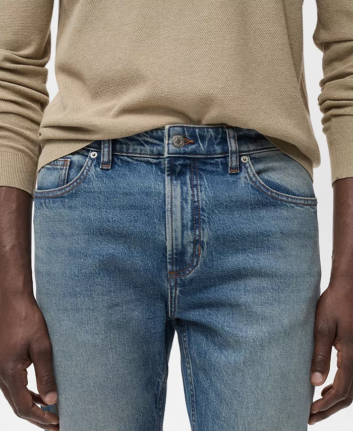 Зауженный крой джинсов Ben Tapered Fit от Mango делает деним более изысканным. Эти джинсы средней посадки из хлопчатобумажной ткани, похожей на деним, имеют зауженный крой, шлевки для ремня, застежку на молнию и пуговицу, два боковых кармана, карман для монет и два накладных кармана сзади.