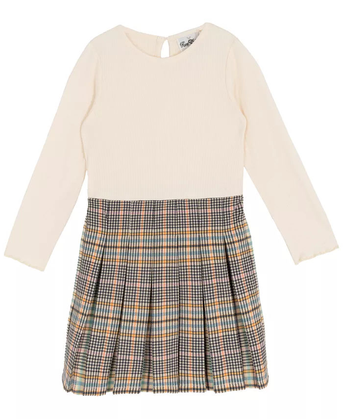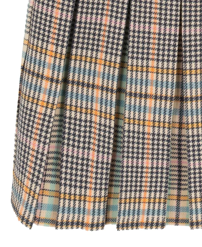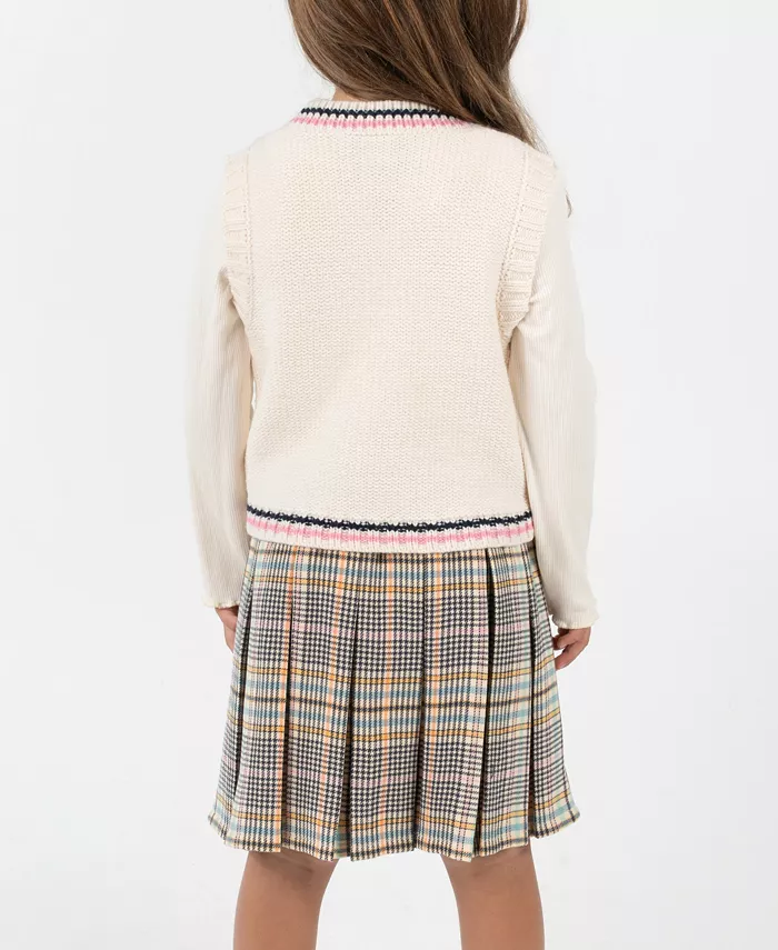 Идеальное платье в стиле преппи и уютно-шикарном, это платье «2 в 1» состоит из трикотажного топа в рубчик и классической клетчатой плиссированной юбки-шорт со съемным жилетом из трикотажной вязки, дополненным полосками в университетском стиле и милым бантом, что создает наряд, готовый к школе и полный очарования.