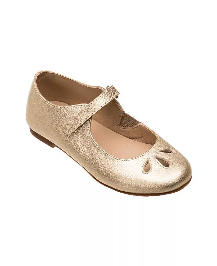 Изящные, но функциональные, эти туфли Мэри Джейн цвета «шампунь» выполнены из мягкой натуральной кожи с легким металлическим блеском и вырезами в форме лепестков на мыске. Без усилителей на носке и пятке, они мягко облегают стопу, обеспечивая естественное движение. Мягкая стелька, мягкий бортик, нескользящая резиновая подошва и удобная застежка на липучке обеспечивают комфорт, гибкость и надежную посадку даже для самых маленьких.
