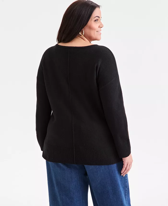 Классический свитер больших размеров с удлиненной туникой от Style & Co отличается удобными длинными рукавами со спущенным плечом и центральным швом для дополнительного визуального интереса.