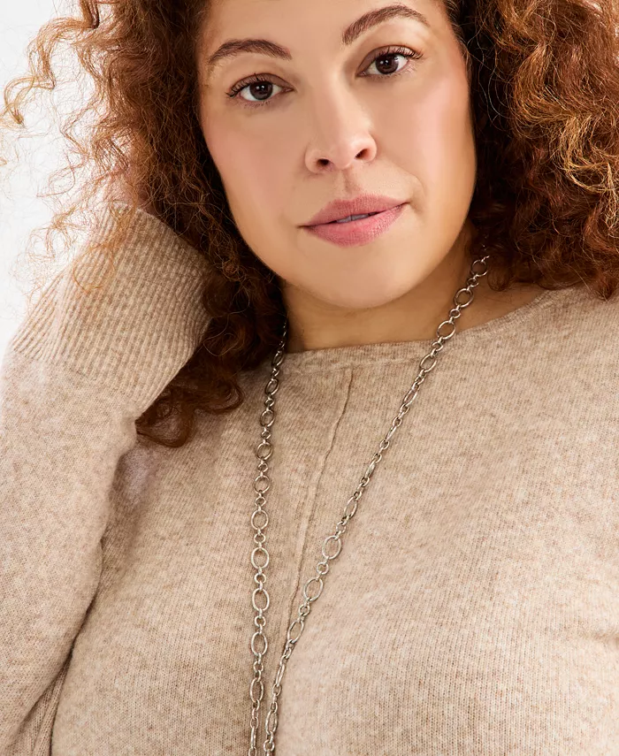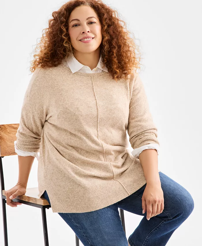 Классический свитер больших размеров с удлиненной туникой от Style & Co отличается удобными длинными рукавами со спущенным плечом и центральным швом для дополнительного визуального интереса.