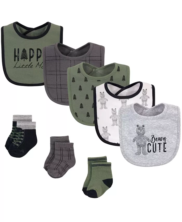 Комплект нагрудников и носков Hudson Baby - это очаровательный набор аксессуаров, который поможет вам подобрать стильные нагрудники и носки. Каждый комплект включает пять нагрудников и три носка с интересными и стильными принтами. Наш набор аксессуаров станет отличным подарком на рождение ребенка. Комплект нагрудников и носков Hudson Baby для новорожденных девочек Chic Lil Babe из хлопка - отличный набор необходимых вещей для вашего малыша.