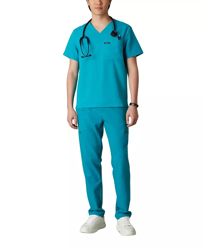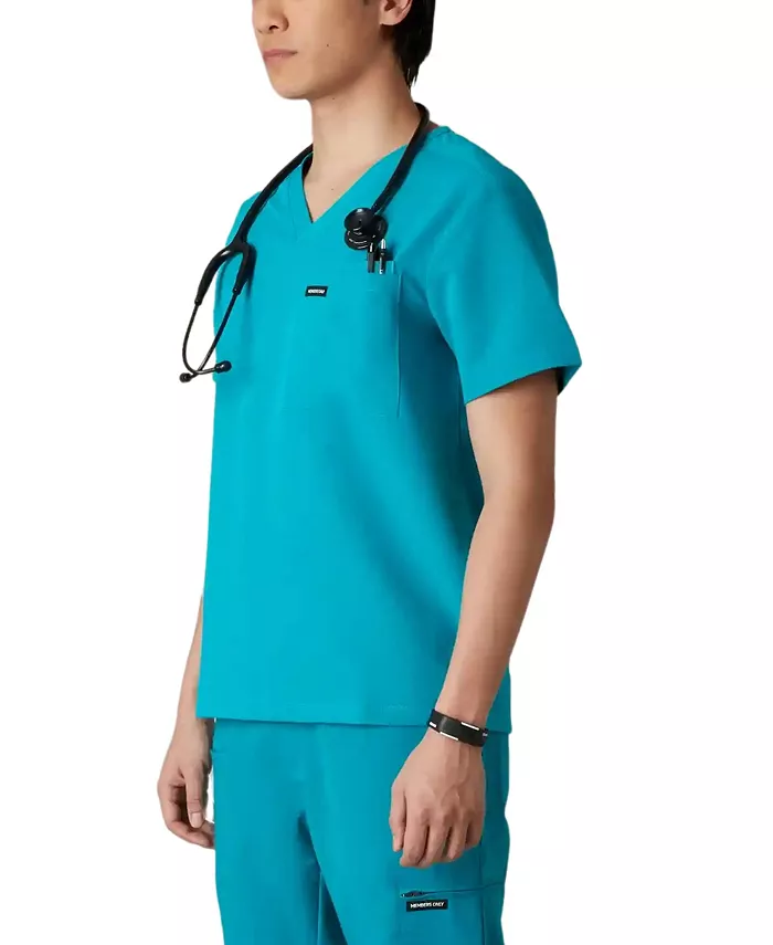 Мужской топ-хаб с современным кроем, V-образным вырезом и разрезом по низу обеспечивает идеальную посадку благодаря приталенной посадке и мягкой дышащей ткани, которая тянется в четырех направлениях, отводит влагу и не мнется, обеспечивая непревзойденный комфорт.