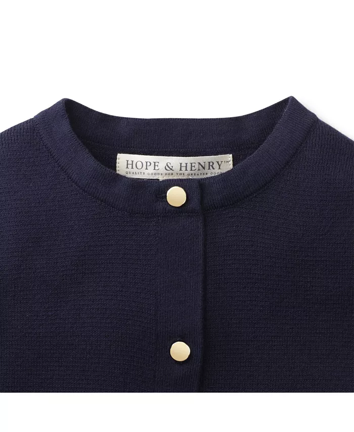 Наш очаровательный тонкий кардиган-свитер - изысканный предмет гардероба для вашей маленькой леди! Текстурный шелковый шов «милано» из мягкого органического хлопка придает этому классическому стилю плотность и структуру двойной вязки, а элегантные золотые пуговицы на планке и карманах добавляют нужное количество блеска.