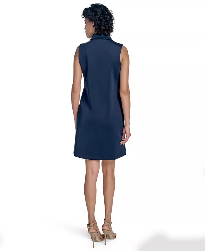 Не обычное платье-футляр: это платье без рукавов от Calvin Klein выполнено из гладкой водолазной ткани и дополнено тремя металлическими застежками-«ключами» на вырезе.