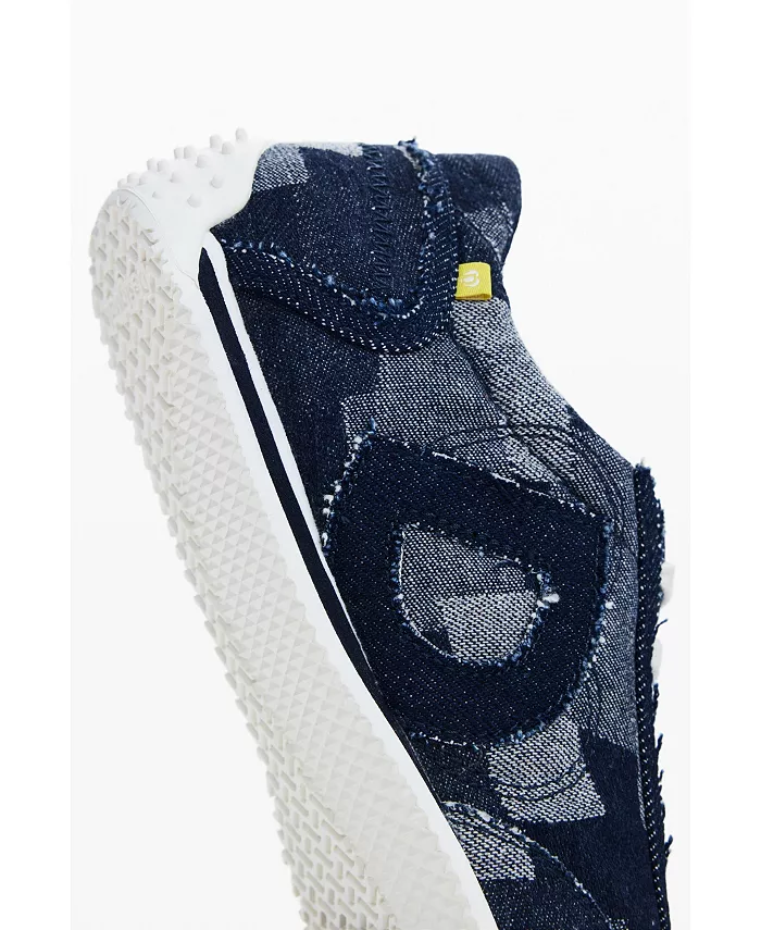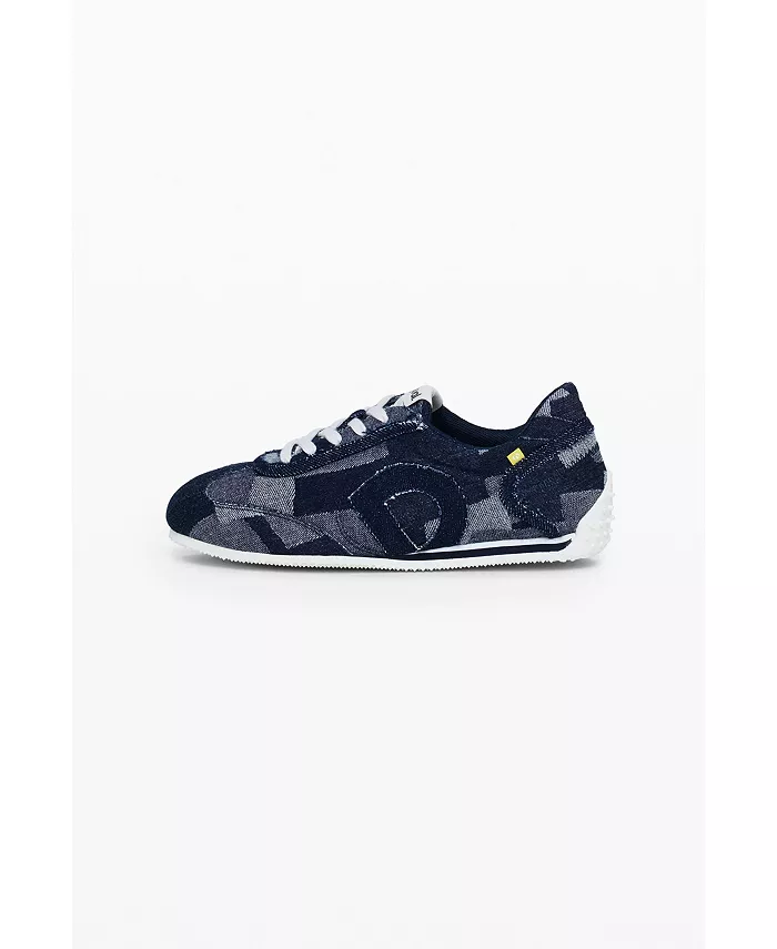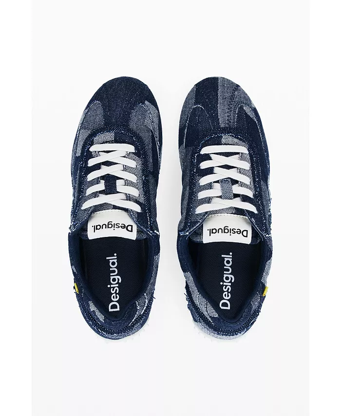 Низкие кеды из джинсовой ткани в стиле пэчворк, в ретро-стиле, с толстой подошвой и шнуровкой.