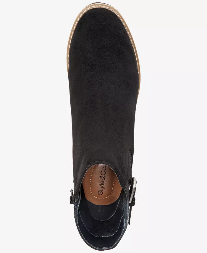Откройте для себя комфорт и комфорт с этими ботинками Macy's с поддерживающей танкеткой и платформой. Стелька из пеноматериала с эффектом памяти и застежка-молния по всей длине с пряжкой обеспечивают длительный комфорт и легкость носки.