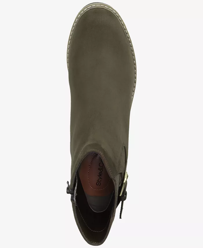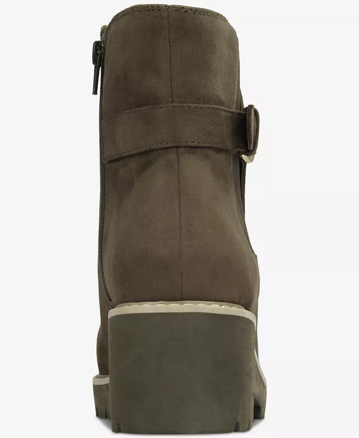 Откройте для себя комфорт и комфорт с этими ботинками Macy's с поддерживающей танкеткой и платформой. Стелька из пеноматериала с эффектом памяти и застежка-молния по всей длине с пряжкой обеспечивают длительный комфорт и легкость носки.