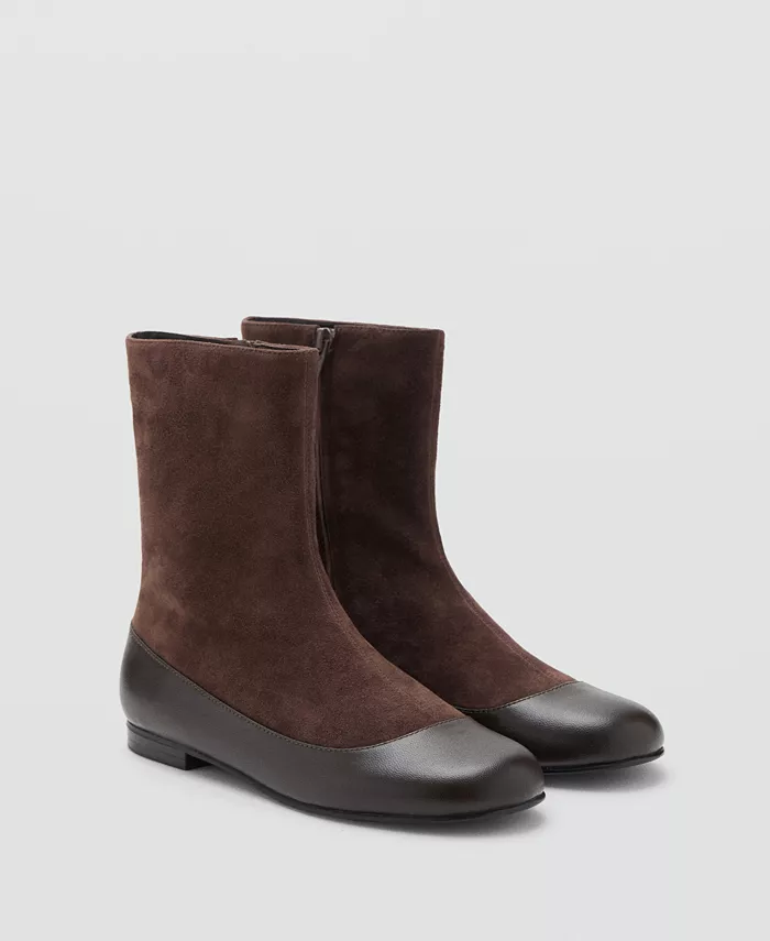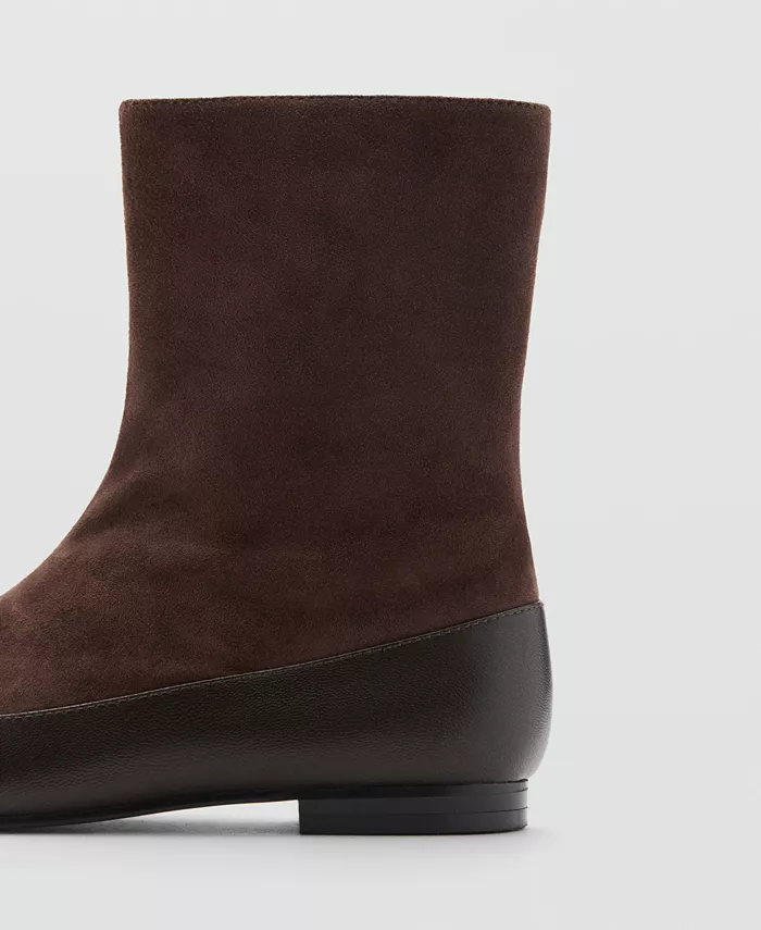 Откройте для себя универсальность с комбинированными кожаными ботильонами от Mango. Они изготовлены из козьей кожи и имеют комбинированную конструкцию с плоской подошвой.