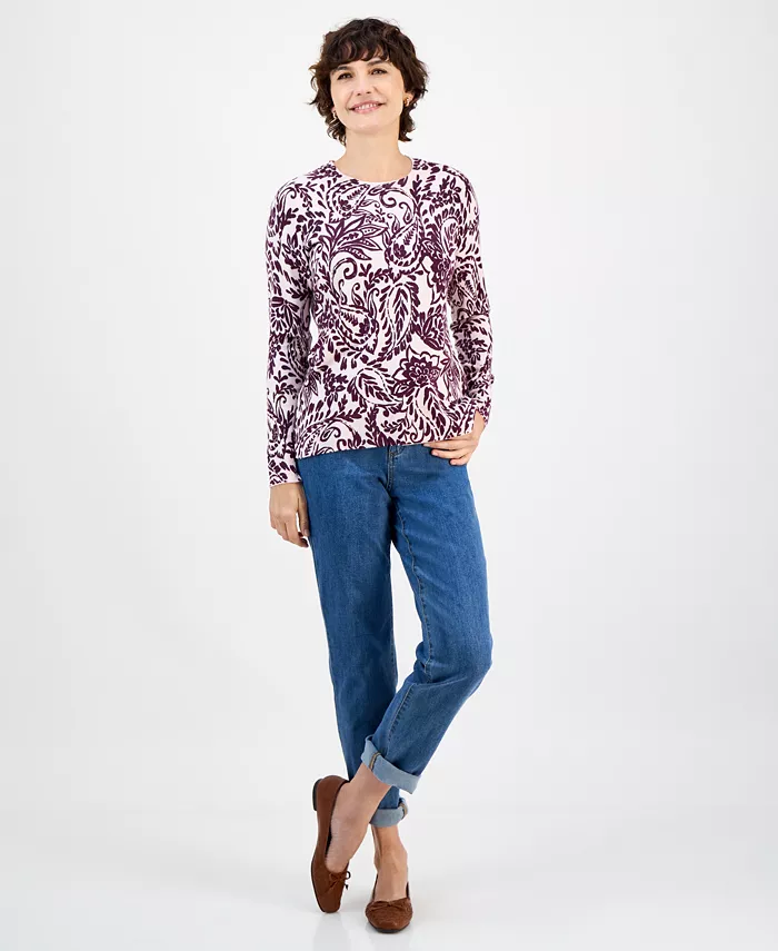 Откройте для себя элегантность в стиле бохо с этим шикарным женским свитером с принтом пейсли от Style & Co. Это эффектная вещь, которая добавит искусного очарования любому образу.