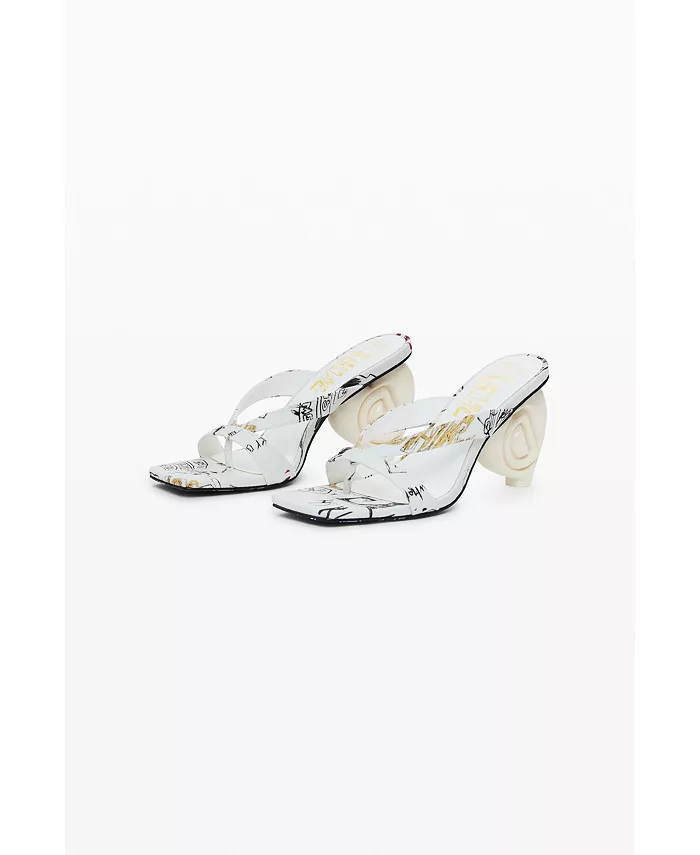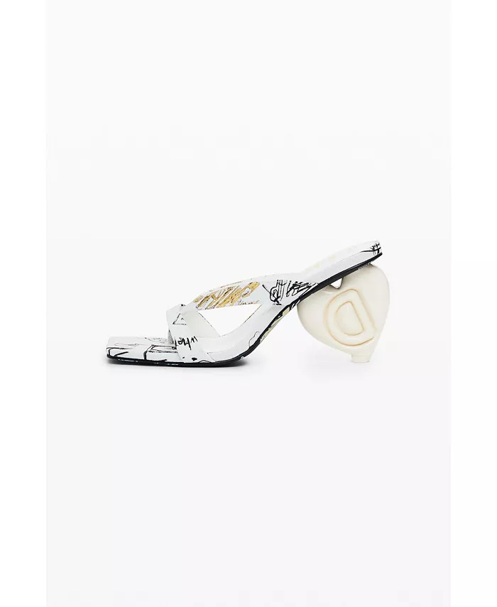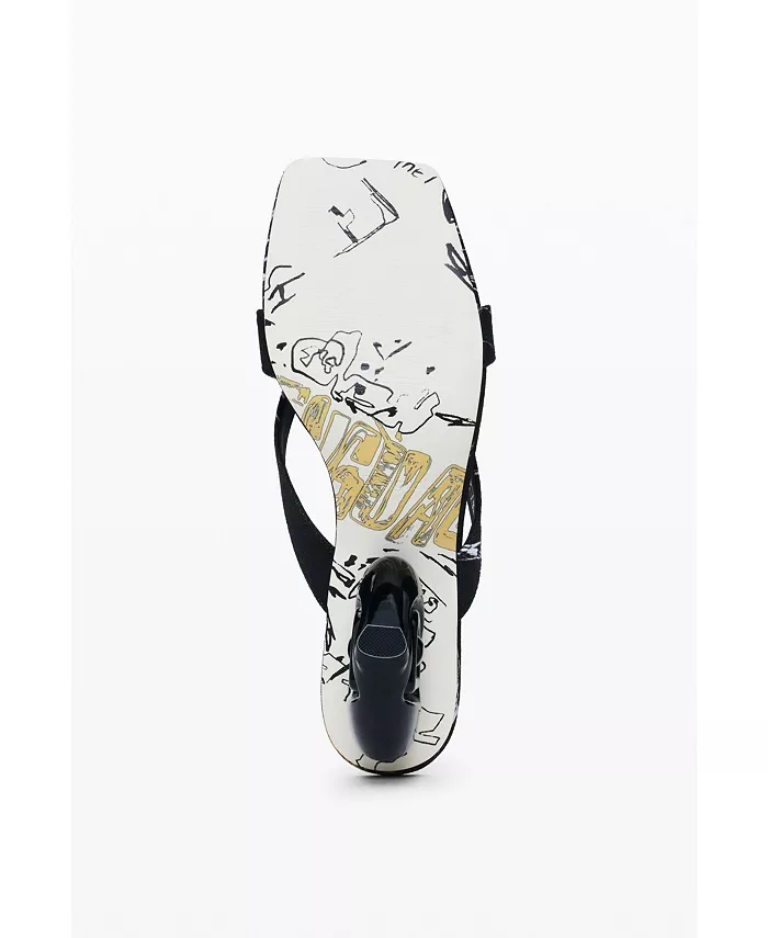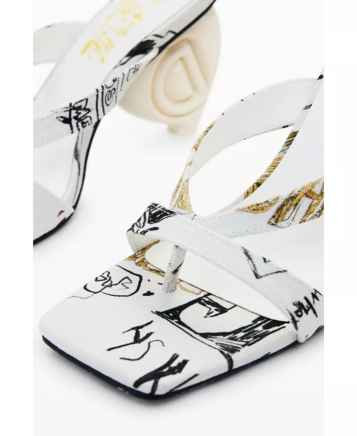 Открытые босоножки с квадратным носком, каблуком в форме сердца, логотипом Desigual и принтом в виде букв.