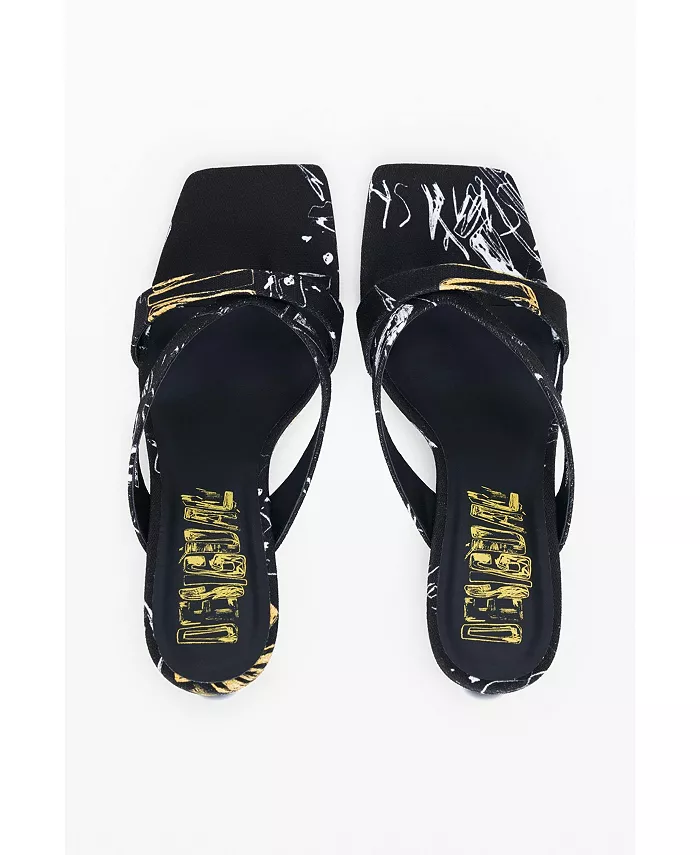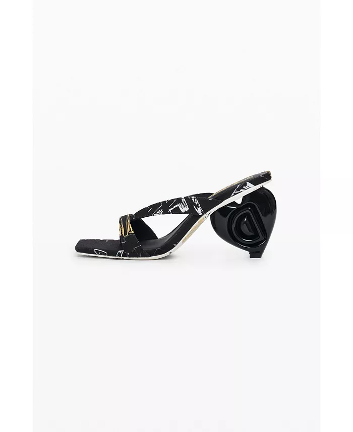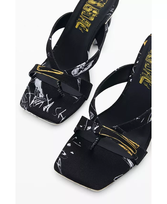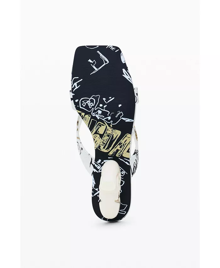 Открытые босоножки с квадратным носком, каблуком в форме сердца, логотипом Desigual и принтом в виде букв.