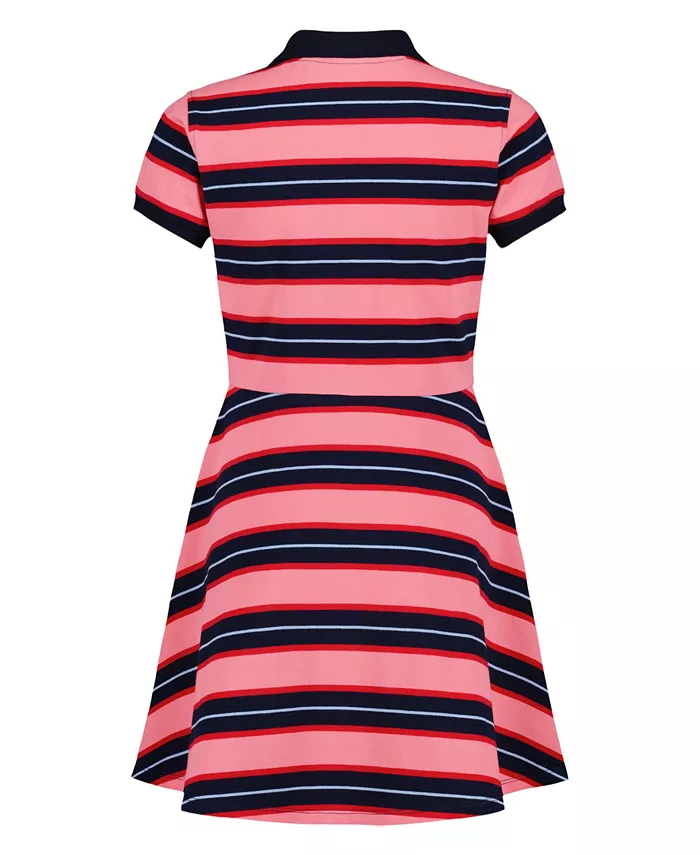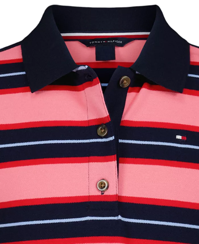 Ощутите легкость и комфорт в этом платье-поло Tommy Hilfiger в полоску в университетском стиле с приталенным кроем и расклешенной юбкой, не стесняющей движений. Короткие рукава с манжетами на резинке обеспечивают структурированный комфорт, а планка с пуговицами позволяет регулировать размер.