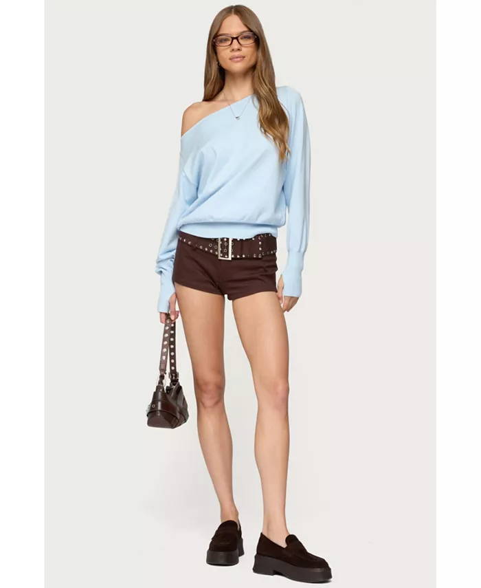 Ощутите максимальный комфорт в этом незаменимом уютном свитере оверсайз. Накиньте его поверх любого наряда для создания идеального расслабленного настроения. Выглядите невероятно стильно благодаря прорезям для больших пальцев и вырезу на плечах.