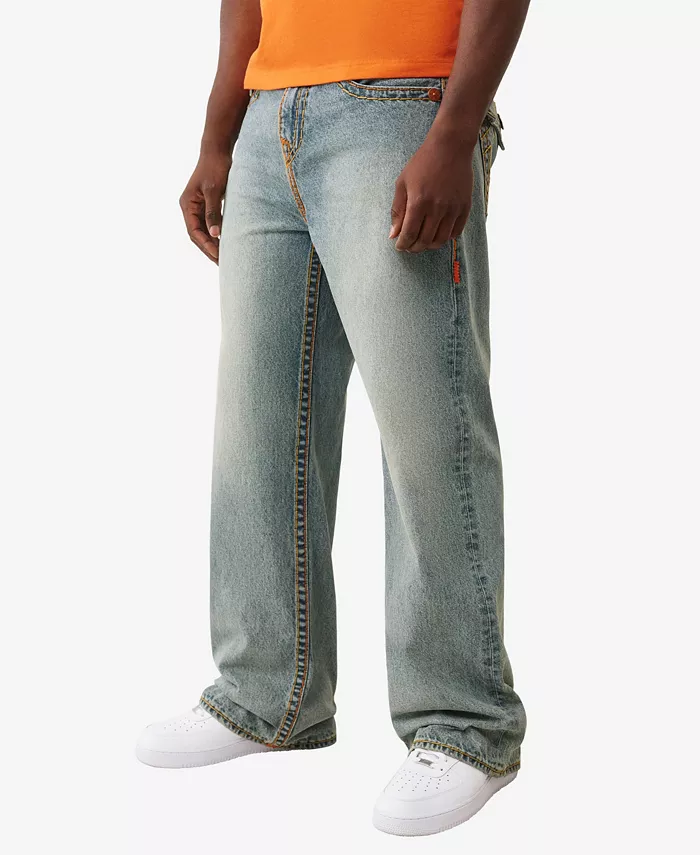Ощутите расслабленный крой в этих джинсах True Religion с ультра-мешковатым силуэтом и застежкой на молнию. Тональная строчка Super T и подковообразные детали на задних карманах создают сдержанные, но эффектные акценты.