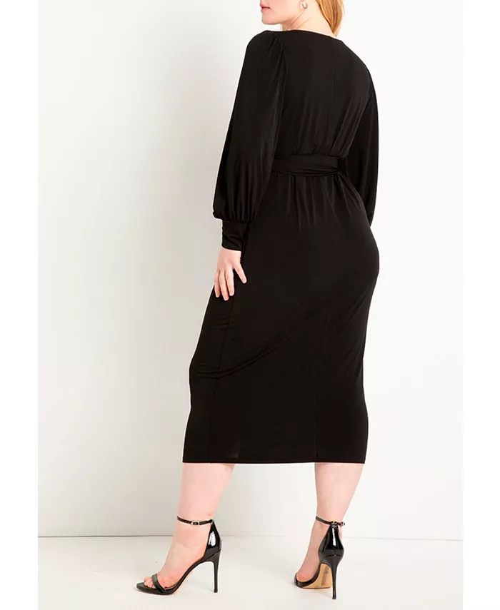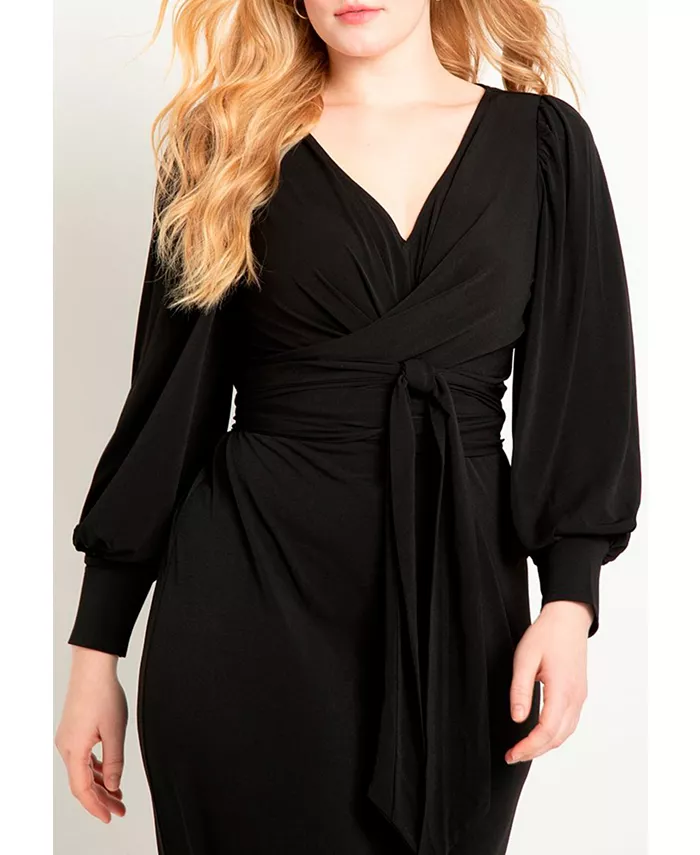 Платье миди на подкладке с юбкой, завязками спереди, юбкой-стойкой и длинными рукавами, выполнено из эластичного матового трикотажа джерси.