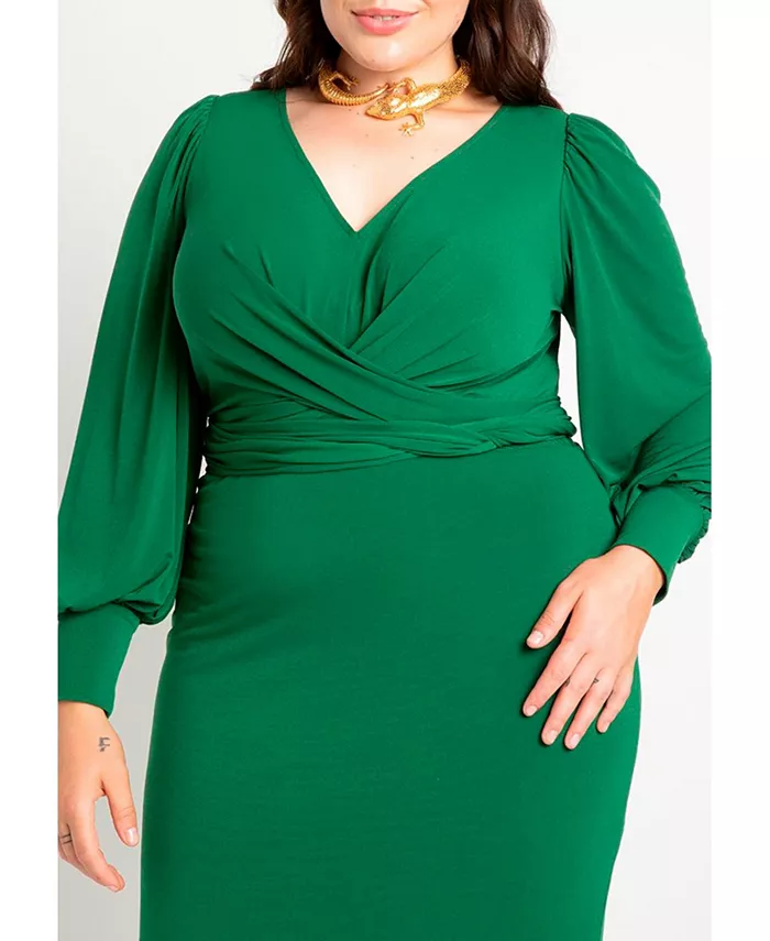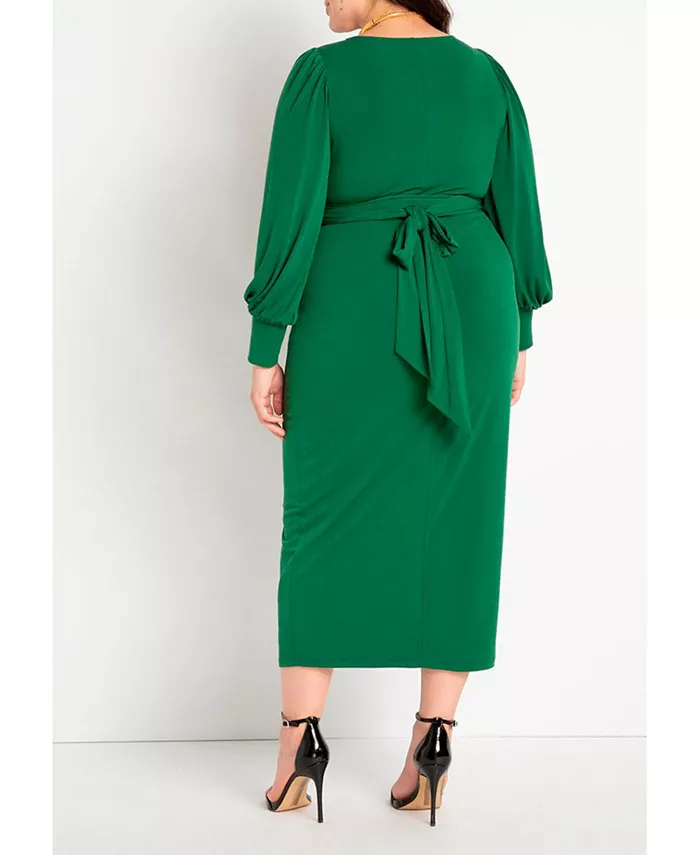 Платье миди на подкладке с юбкой, завязками спереди, юбкой-стойкой и длинными рукавами, выполнено из эластичного матового трикотажа джерси.