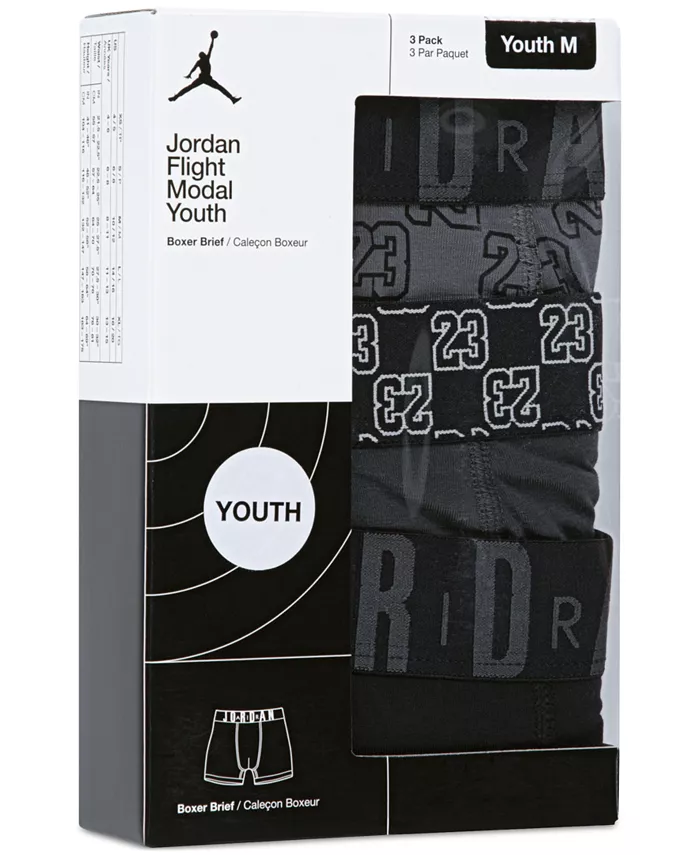 Подарите своему юному спортсмену комфорт и уверенность с комплектом из трех трусов-боксеров Jordan из мягкого эластичного джерси. Стильный жаккардовый эластичный пояс с культовым логотипом Jordan обеспечивает идеальное сочетание комфорта и комфорта.
