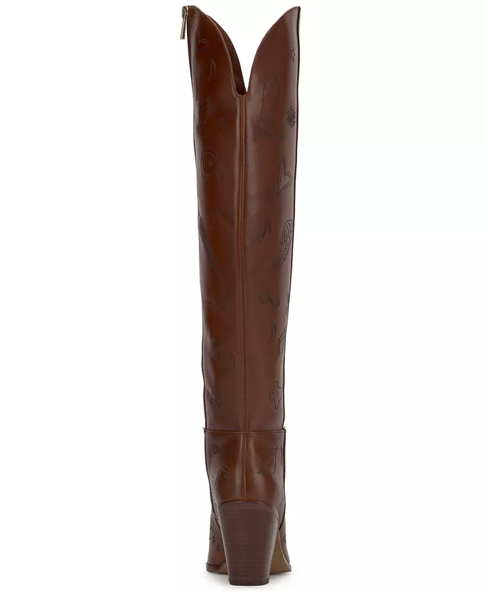 Поднимите свой стиль на новую высоту с этими женскими сапогами Ravyn от Jessica Simpson с шикарным миндалевидным носком, элегантным силуэтом выше колена и удобным наборным каблуком. Молния по всей длине позволяет легко надевать и снимать сапоги, добавляя драматизма и изысканности любому образу.