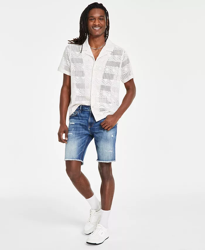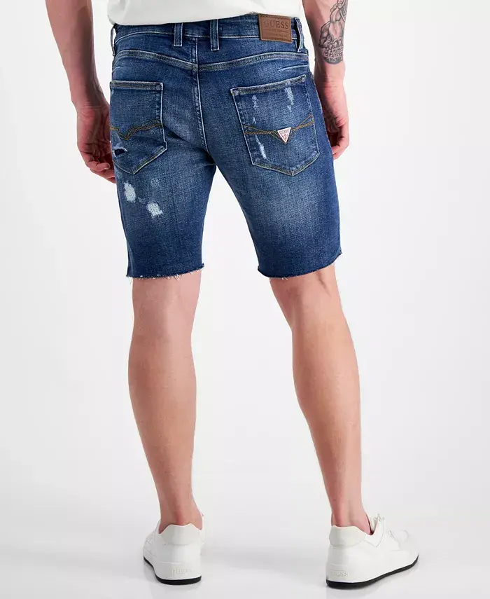 Придайте своему непринужденному образу нотку потертости с помощью мягкого денима и отделки в стиле потертостей этих шорт Logan от GUESS.