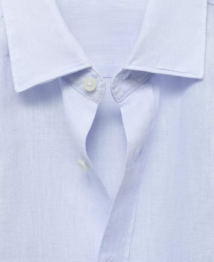 Проведите день легко и непринужденно в льняной рубашке от Mango. Эта рубашка прямого кроя с отложным воротником, застежкой на пуговицы спереди, длинными рукавами с манжетами на пуговицах, резинкой сзади и закругленным низом.
