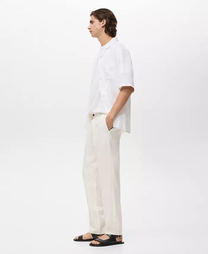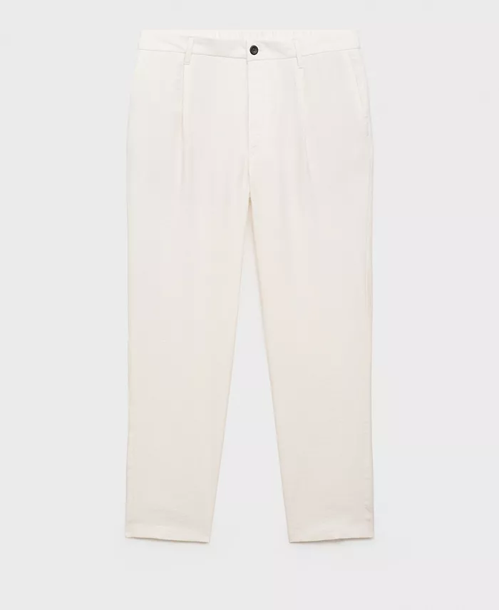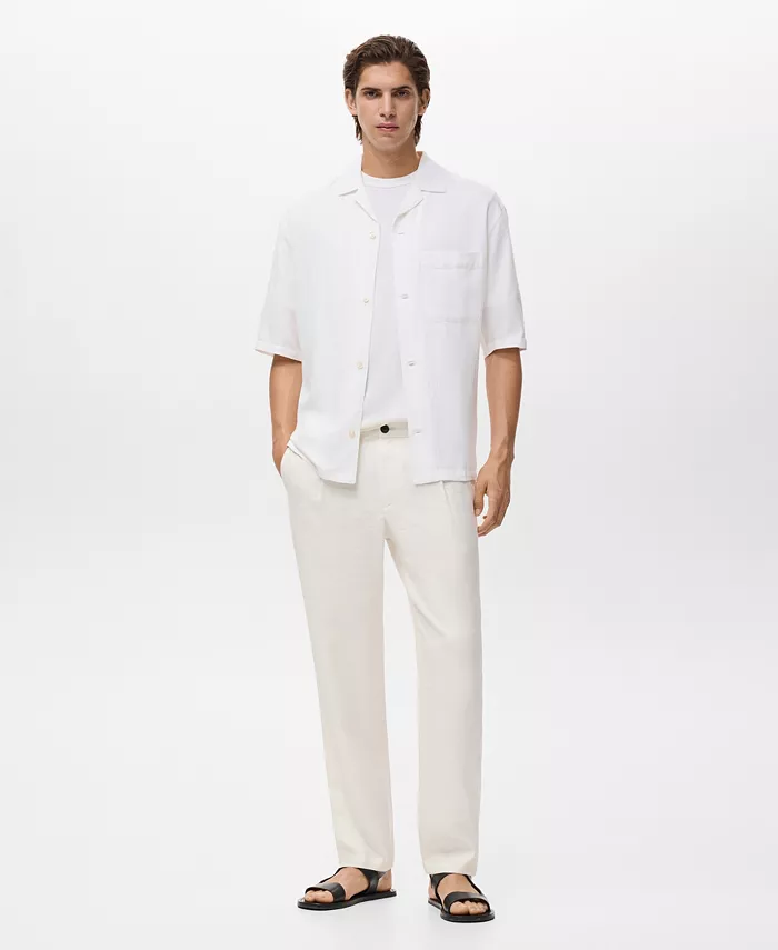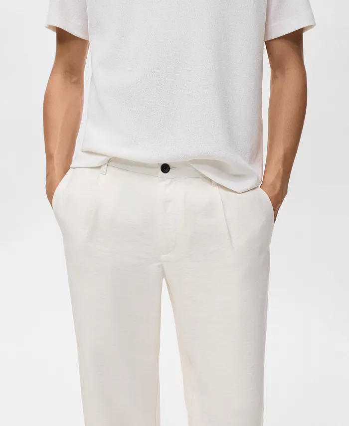 Прямые брюки Mango с плиссировкой отличаются четкими линиями. Они изготовлены из структурированной ткани, имеют защипы спереди, прямой крой, шлевки для ремня, застежку на молнию и пуговицу, боковые карманы и прорезные карманы сзади.