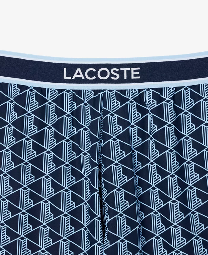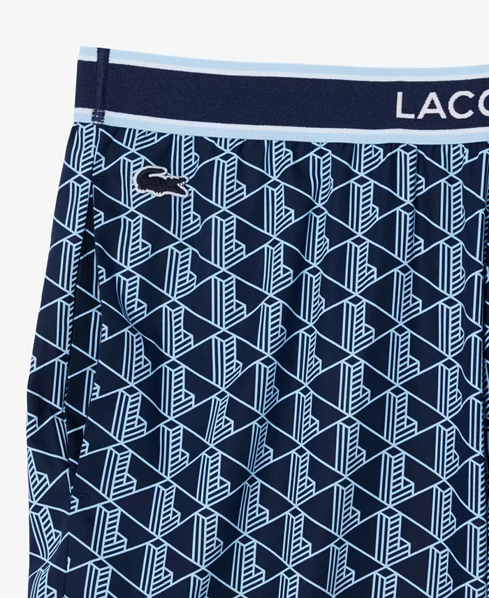 Расслабьтесь с комфортом в этих пижамных брюках Lacoste с принтом монограммы по всей поверхности и ребристыми манжетами на щиколотках. Эластичный пояс со шнурком обеспечивает надежную и свободную посадку.