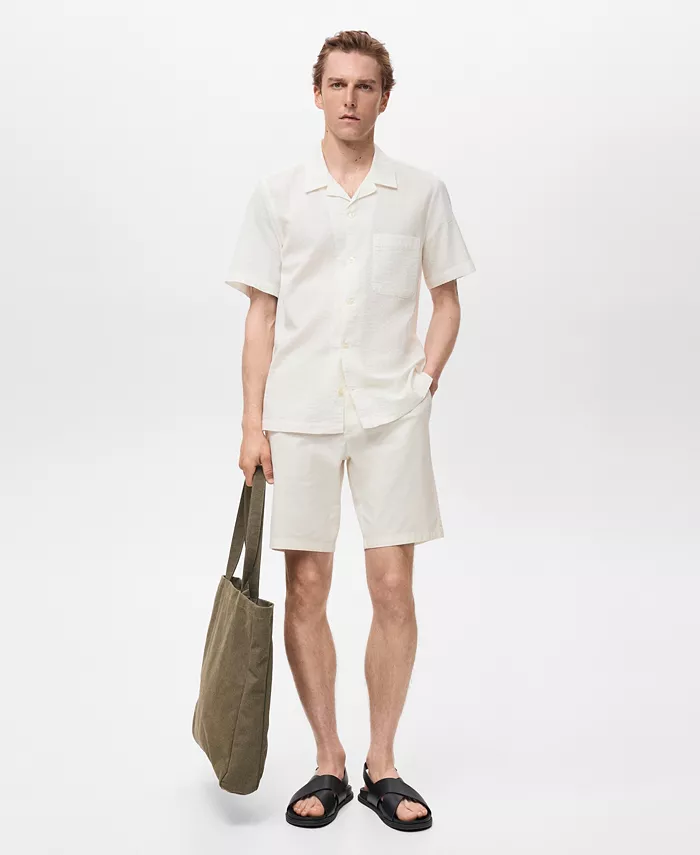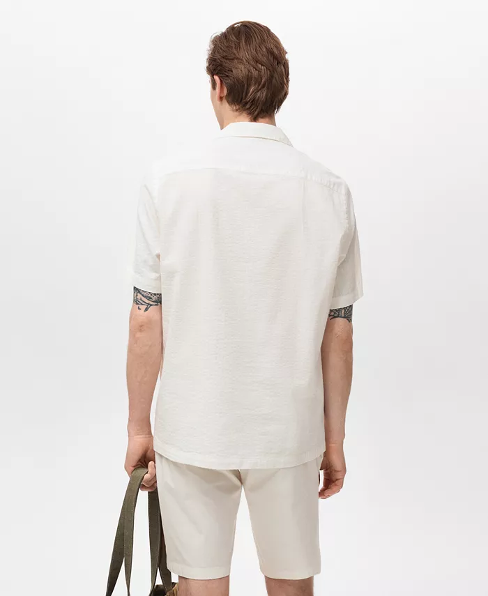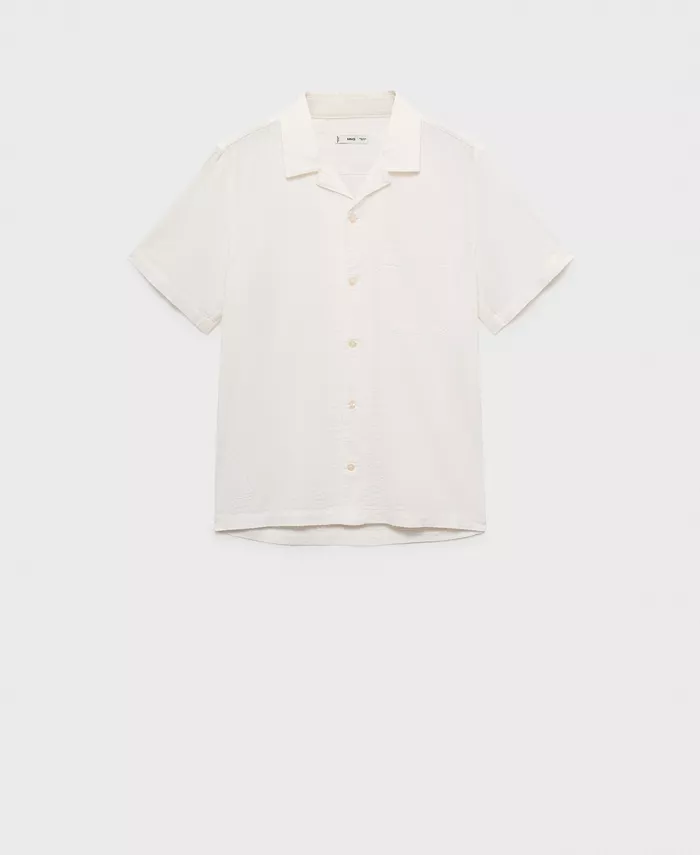 Рубашка Regular Fit Seersucker от Mango отличается непринужденной изысканностью. Изготовлена из хлопкового сирсакера, имеет короткие рукава, воротник-стойку, накладной карман на груди, вытачку сзади и застежку на пуговицы спереди.