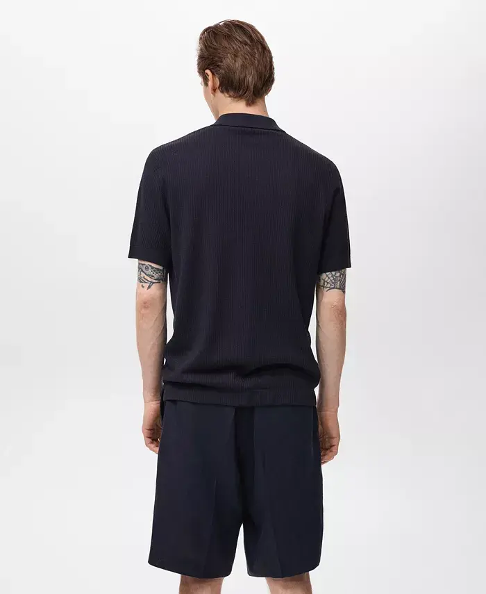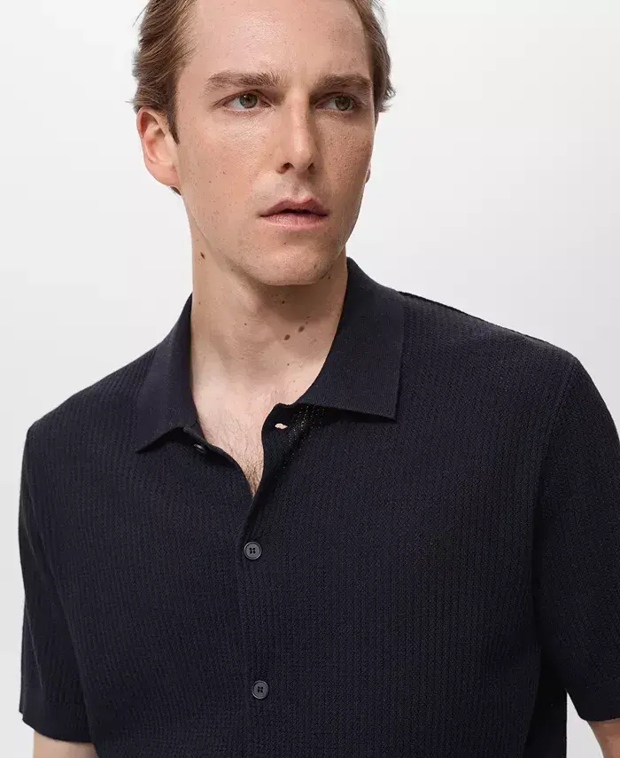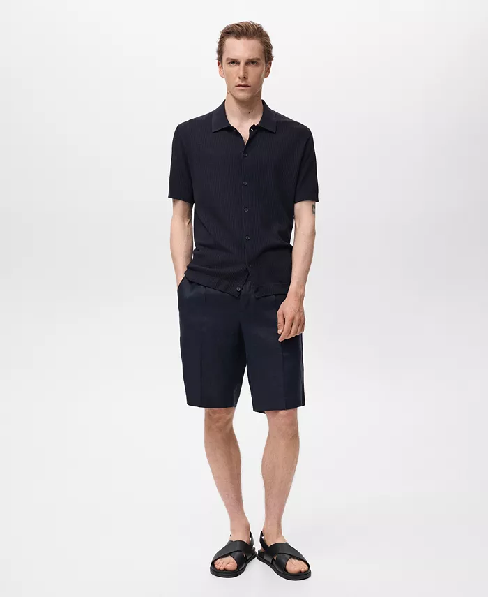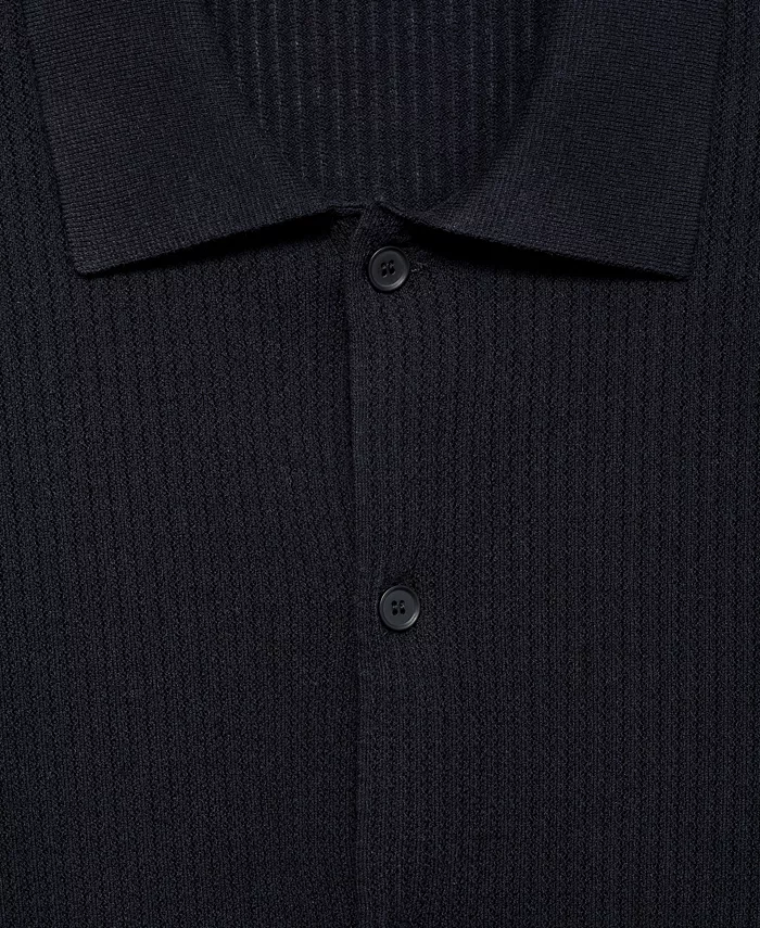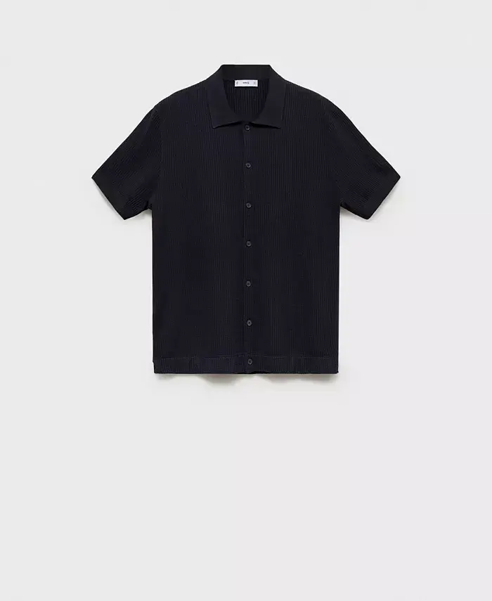 Рубашка из трикотажа в рубчик от Mango сочетает в себе комфорт и продуманную до мелочей конструкцию. Эта рубашка классического кроя выполнена из смеси хлопка, льна и вискозы. Она имеет ребристую вязку, короткие рукава, ребристый воротник, рукава и нижний край, а также прямой подол.