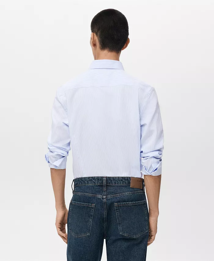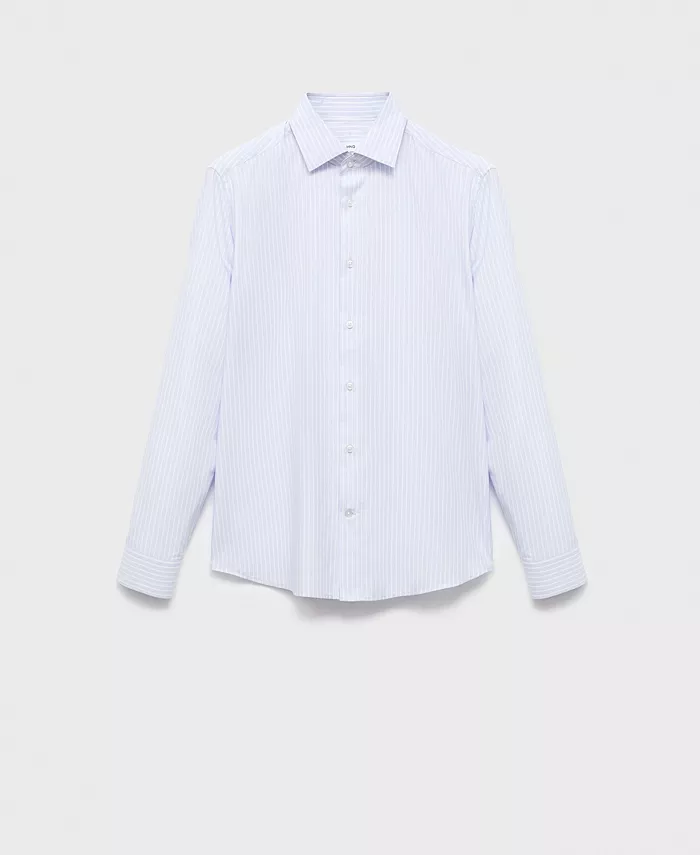 Рубашка-рубашка в полоску Cotton Striped Slim-Fit от Mango выполнена из хлопковой ткани с классическими полосками.