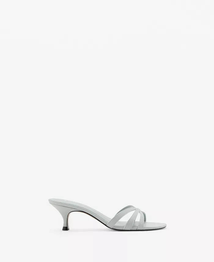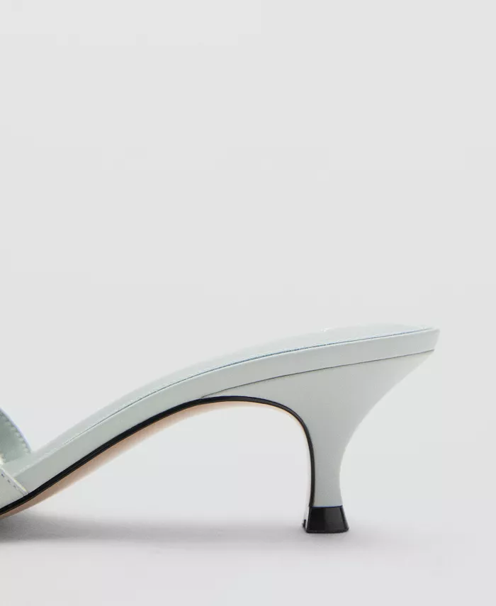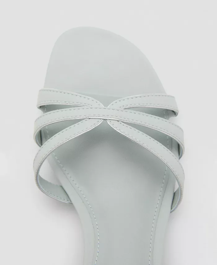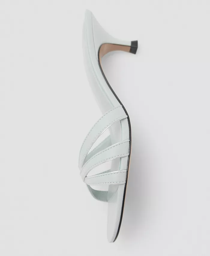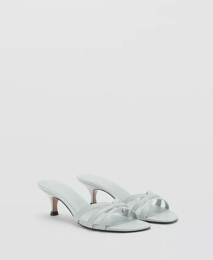 Сандалии на каблуке-рюмочке с ремешками от Mango, отличающиеся минималистичными линиями, добавляют конструкции. Эти босоножки из смесовой ткани отличаются ремешком, открытым носком, каблуком-рюмочкой высотой 4,7 см и без застежек.