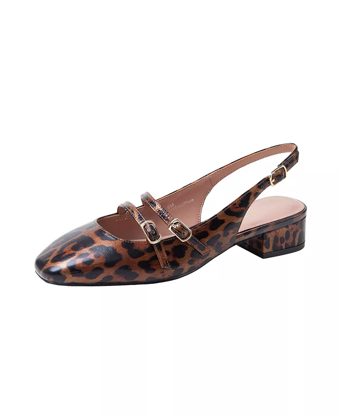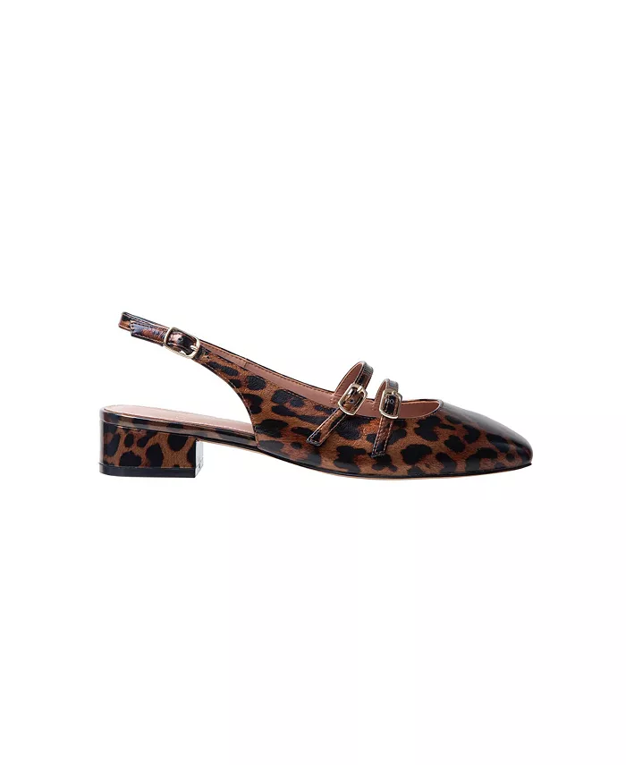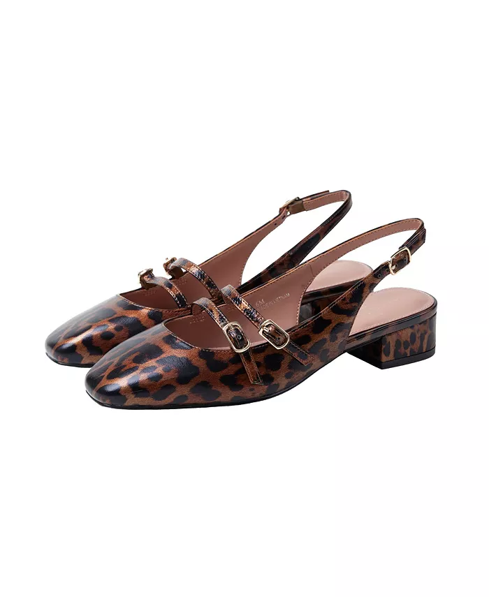 Современные туфли Mary Jane с открытым носком, низким блочным каблуком и двумя ремешками из жатого лакированного материала. Мягкая стелька и нескользящая тисненая резиновая подошва.
