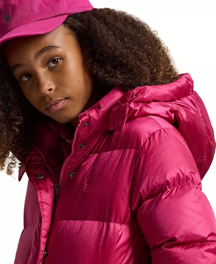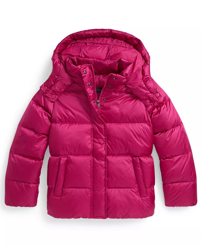 Согрейте ее и сделайте стильной в холодные дождливые дни с помощью этой металлизированной куртки Polo Ralph Lauren с отстегивающимся капюшоном, воротником-стойкой и эластичными манжетами для дополнительной защиты. Фирменная планка с застежкой «PRL» добавляет фирменный, изысканный штрих.
