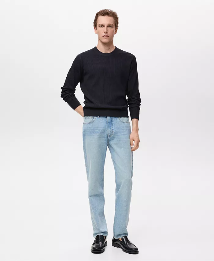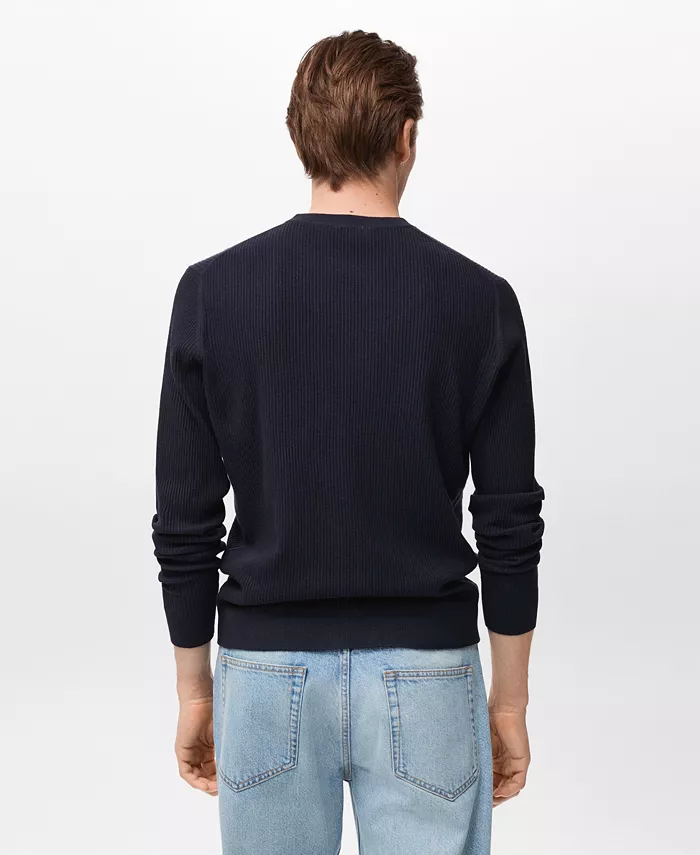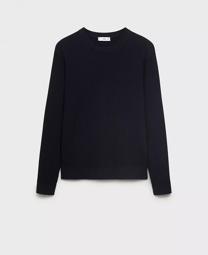 Создайте многослойный образ с помощью хлопкового свитера тонкой резинки от Mango. Этот свитер классического кроя из смесовой хлопковой ткани с тонкой резинкой, круглым вырезом, длинными рукавами с эластичными манжетами, необработанным краем и прямым нижним краем.