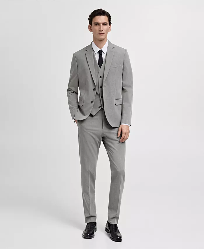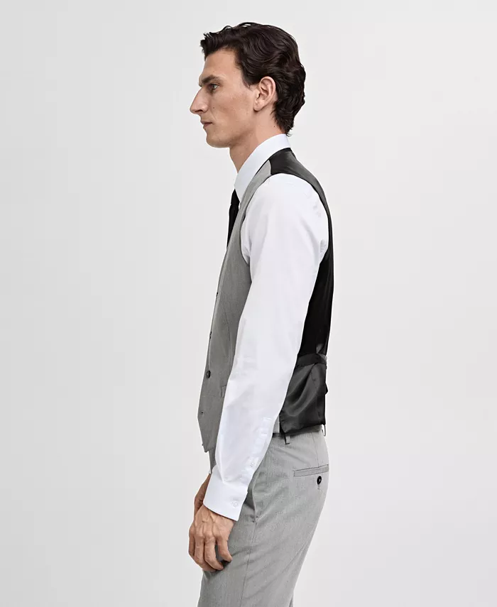 Создайте стильный образ с жилетом Paris Super Slim-fit от Mango. Он изготовлен из эластичной ткани, имеет V-образный вырез, застежку на пуговицы спереди, прорезные карманы, внутренний карман, регулируемую пряжку сзади, без рукавов и подкладку.