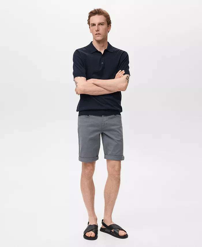 Создайте элегантный и непринужденный образ с облегающими джинсовыми шортами-бермудами от Mango. Эти облегающие шорты из хлопковой ткани застегиваются на пуговицы и молнию, имеют шлевки для ремня, боковые карманы и карманы для монет, накладные карманы сзади и подгибку.
