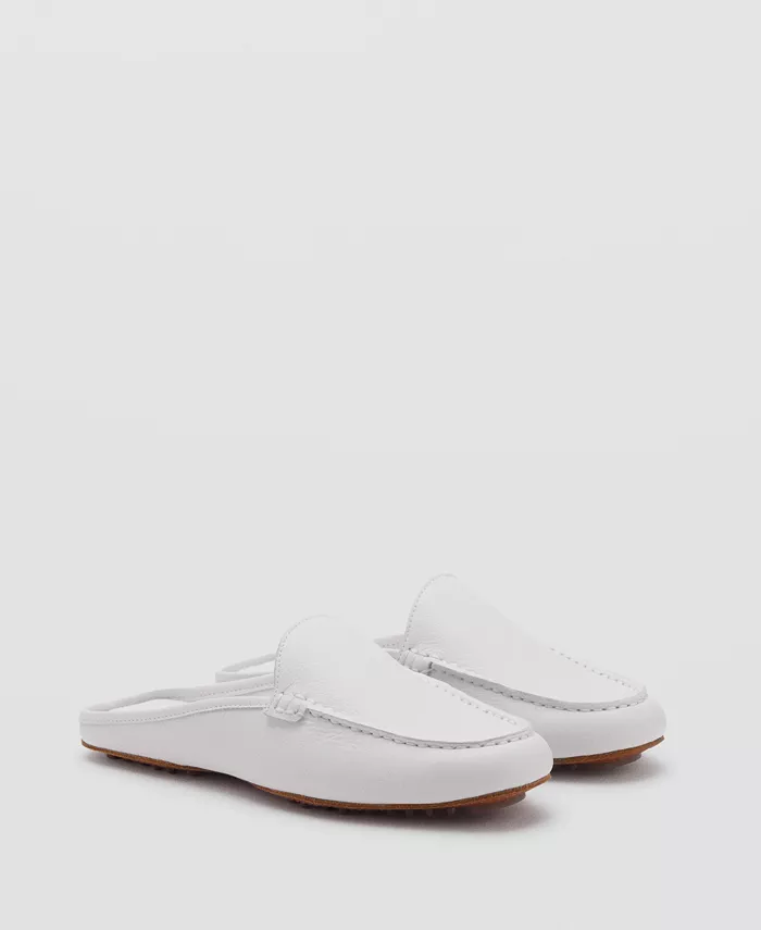 Сохраняйте минимализм с кожаными туфлями Mango на плоской подошве. Эти туфли из бычьей кожи имеют открытую заднюю часть.