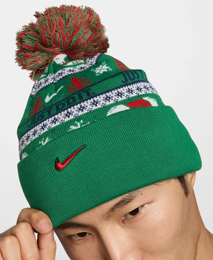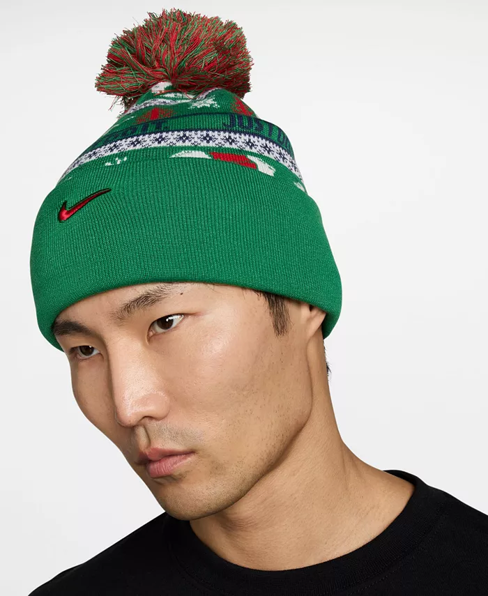 Сохраняйте тепло в праздничном стиле с этой шапкой Peak от Nike с жаккардовым узором в праздничном стиле с нотками Nike. Глубокая макушка и широкий манжет обеспечивают гибкую защиту, а съемный разноцветный помпон добавляет игривости.